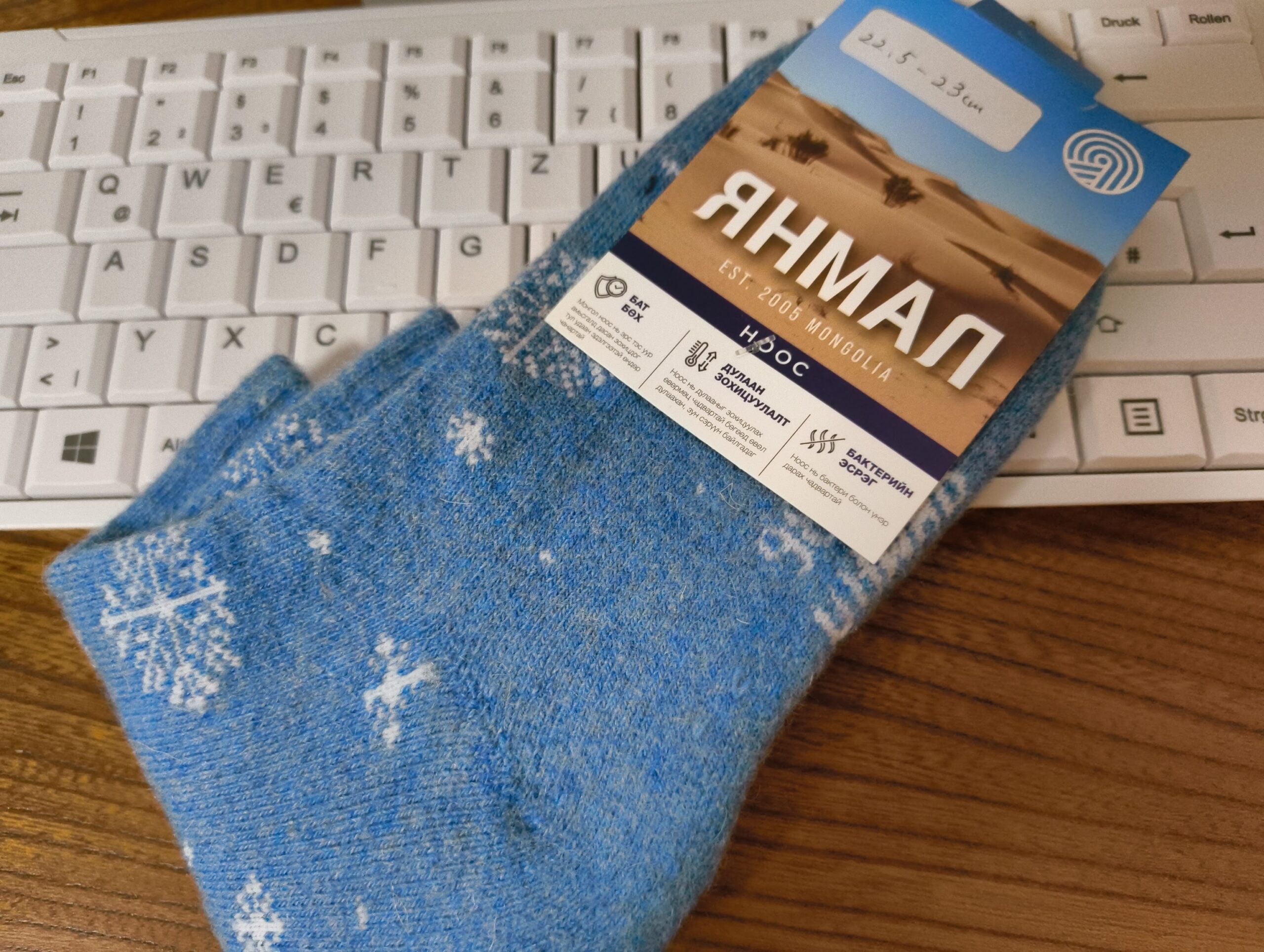 何かと モンゴルの靴下 niboshi 11/08/2025 no Comments ユーラシア文化館にモンゴルの塩ミルクティーを買求めに行った。 売店にウールで作られたモンゴル製品の靴下もあり、北海道旅行に備え1足購入。 1210円とお手軽な値段も嬉しいが、毛糸の暖かさに期待。